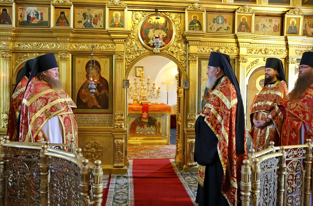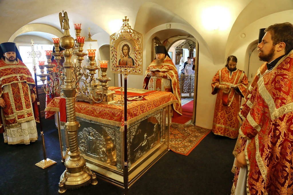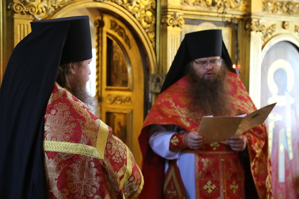 Его Высокопреподобию сослужили заместитель председателя Синодального отдела по монастырям и монашествующим архимандрит Стефан (Тараканов) и братия Николо-Угрешского монастыря в священном сане.