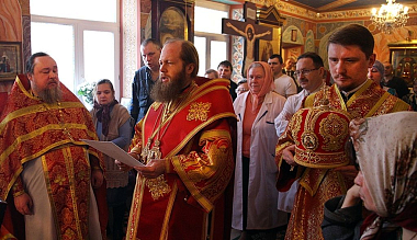 Его Высокопреосвященству сослужил настоятель храма иеромонах Марк (Волков). По традиции в день престольного праздника епископ Савва совершает богослужение, за которым молятся пациенты и медики этого лечебного учреждения.