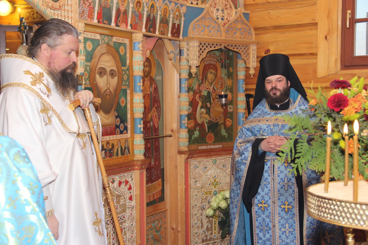 Его Преосвященство в сослужении настоятеля подворья иеромонаха Сергия (Филиппова) и насельника иеродиакона Арсения (Гуляева) совершил в данном храме великую вечерню и чтение акафиста иконе Божией Матери «Неувядаемый Цвет» перед храмовым образом.