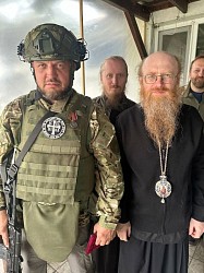 Важной целью поездки была также встреча с архиепископом Новоазовским Варсонофием. Встреча прошла в неофициальной обстановке. Владыка Варсонофий рассказал о том, как живет прифронтовая епархия, о вверенных его руководству приходах, о священниках, о настроениях бойцов и прихожан, показал следы обстрелов его храма.