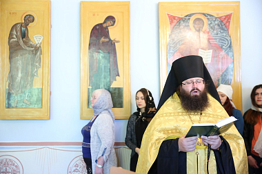 Перед началом молебна игумен Петр (Еремеев) обратился к преподавателям и студентам Московского Православного института (МПИ) с проповедью:
