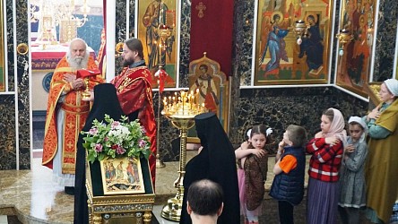 После Литургии священнослужители поздравили всех женщин с праздником жен-мироносиц, иерей Владимир Зыков произнес проповедь о празднуемом событии, хор спел многолетие игумении Неонилле с сестрами.