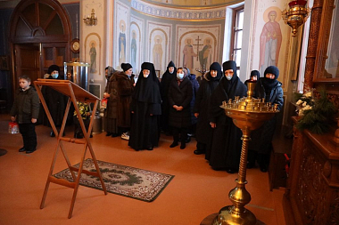 За богослужением молились настоятельница обители игумения Мария (Солодовникова), старшая сестра Успенского подворья монахиня Фекла (Мельникова), насельницы обители и подворья Борисоглебского Аносина монастыря, прихожане и паломники обители.