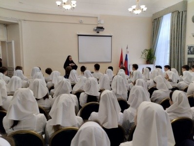 Вместе с игуменией Елисаветой (Поздняковой), настоятельницей Марфо-Мариинской обители милосердия, будущие сестры милосердия говорили том, что такое милосердие, как его проявлять, чтобы оно пошло на пользу как помогающим, так и тем, кому оказывается помощь. Также учащиеся рассуждали о том, какие человеческие качества объединяются понятием «милосердие», о роли женщины в современном мире. Пришли к выводу, что святая преподобномученица Великая княгиня Елизавета Феодоровна, основательница Марфо-Мариинской обители, может быть примером идеальной женщины для наших современников. Стараясь жить по-христиански, она много лет помогала своему супругу, Великому князю Сергею Александровичу, генерал-губернатору Москвы. После его смерти Елизавета Феодоровна полностью посвятила себя служению Богу и нуждающимся в помощи людям.