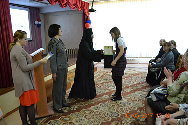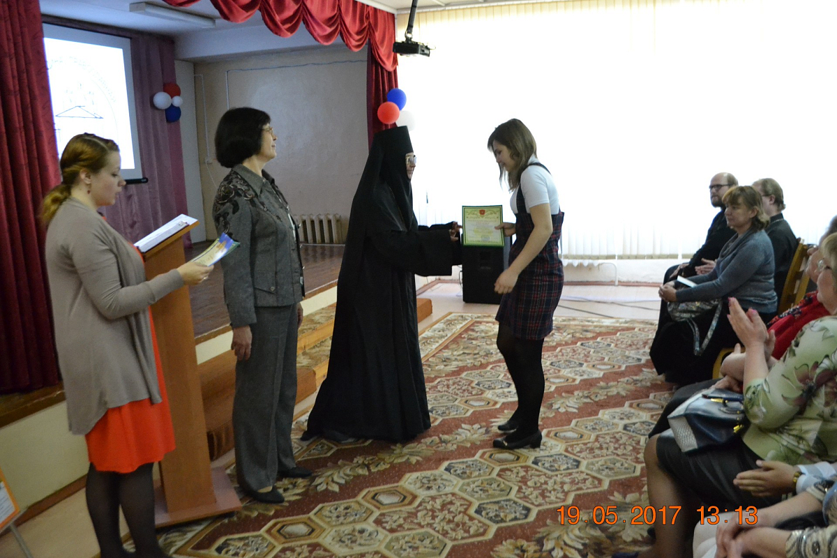 В конце встречи методист отдела образования и игумения Фаина вручили выступавшим наградные грамоты.