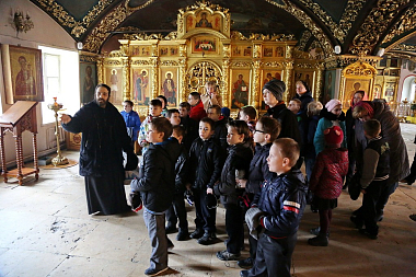 Для учащихся 2-х классов московской специальной (коррекционной) школы-интерната № 108 путешествие в Николо-Угрешский монастырь – первое в их жизни. Многие из них впервые переступили порог храма. Насельник обители Филарет (Иглицкий) окропил в храме святой водой директора специальной школы-интерната № 108 Галину Павловну Бажанову и ее подопечных.