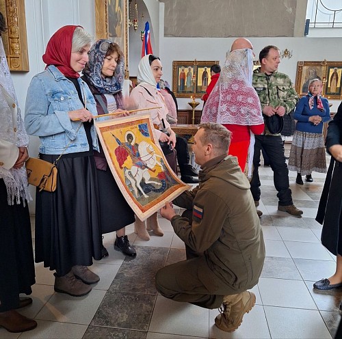 С верой в победу и заступничество святого небесного покровителя защитников нашей Родины, хоругвь в ближайшее время будет доставлена в зону боевых действий.