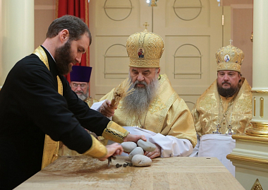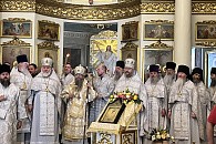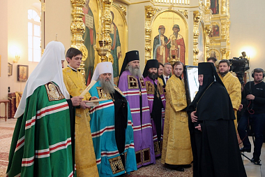 В дар новоосвященному храму Предстоятель передал список иконы Божией Матери «Умиление» – точную копию иконы, перед которой молился в своей келии преподобный Серафим Саровский.