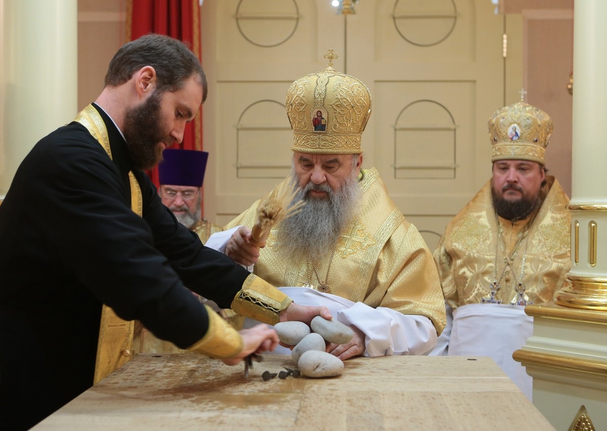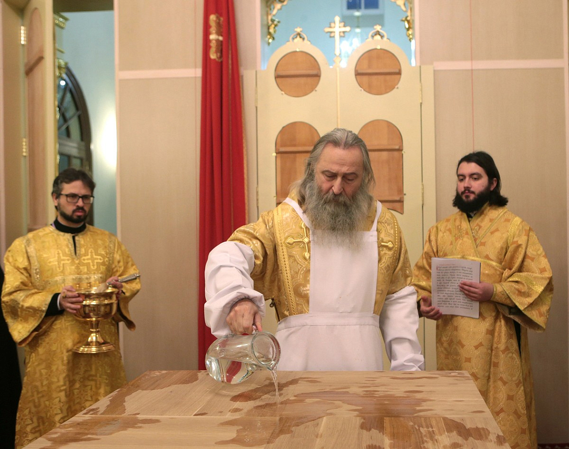 Центральный Престол был освящен в честь Вознесения Господня, северный – в честь Успения Пресвятой Богородицы, южный – в честь святителя Филиппа, митрополита Московского и всея России, чудотворца.