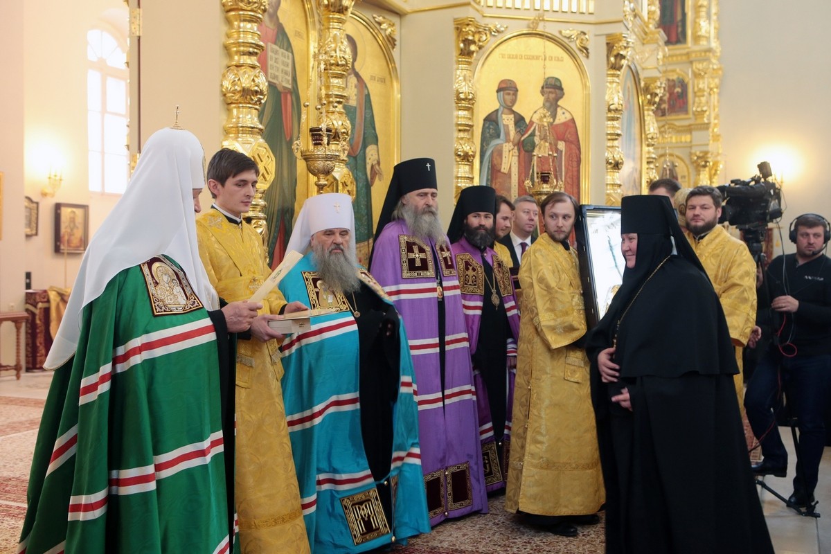 Был оглашен Патриарший указ, согласно которому в главном храме Вознесения Господня Кресто-Воздвиженского Иерусалимского ставропигиального женского монастыря благословляется совершение Божественной литургии с отверстыми Царскими вратами по «Отче наш...».