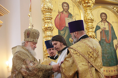 За Литургией Святейший Патриарх Кирилл рукоположил в сан иеродиакона монаха Викторина (Гурова), насельника Введенского ставропигиального мужского монастыря Оптина пустынь.