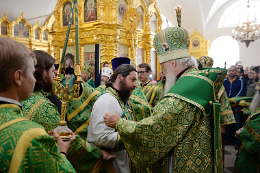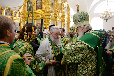 За Литургией Святейший Патриарх Кирилл рукоположил иеродиакона Марка (Трушкова), насельника Введенской Оптиной пустыни, в сан иеромонаха.
