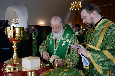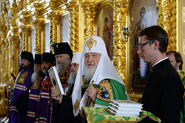 После сугубой ектении Предстоятель Русской Православной Церкви вознес молитву о мире на Украине.