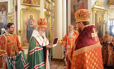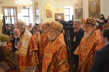 Предстоятелю Русской Православной Церкви сослужили: митрополит Крутицкий и Коломенский Ювеналий; председатель Отдела внешних церковных связей Московского Патриархата митрополит Волоколамский Илларион; председатель Издательского Совета Русской Православной Церкви митрополит Калужский и Боровский Климент; представитель Патриарха Александрийского при Патриархе Московском и всея Руси митрополит Киринский Афанасий; митрополит Феодосийский и Керченский Платон; митрополит Омский и Таврический Владимир; митрополит Пермский и Кунгурский Мефодий; митрополит Истринский Арсений; митрополит Казанский и Татарстанский Феофан; председатель Синодального комитета по взаимодействию с казачеством митрополит Ставропольский и Невинномысский Кирилл; руководитель Управления Московской Патриархии по зарубежным учреждениям епископ Богородский Антоний.