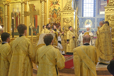 Его Святейшеству сослужили: архиепископ Сергиево-Посадский Феогност, председатель Синодального отдела по монастырям и монашеству, наместник Свято-Троицкой Сергиевой лавры; епископ Люберецкий Серафим, председатель Синодального отдела по делам молодежи; игумен Варфоломей (Петров), наместник Николо-Угрешского монастыря; архимандрит Стефан (Тараканов), заместитель председателя Синодального отдела по монастырям и монашеству; игумен Иоанн (Рубин), ректор Николо-Угрешской духовной семинарии; игумен Петр (Еремеев), наместник Высоко-Петровского ставропигиального мужского монастыря; протоиерей Андрей Марущак, клирик кафедрального соборного Храма Христа Спасителя г. Москвы; насельники Николо-Угрешской обители в священном сане.