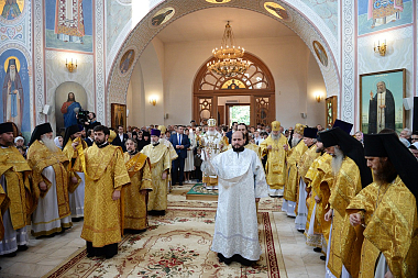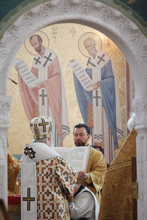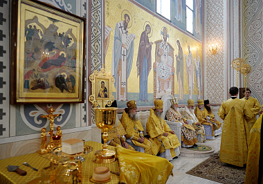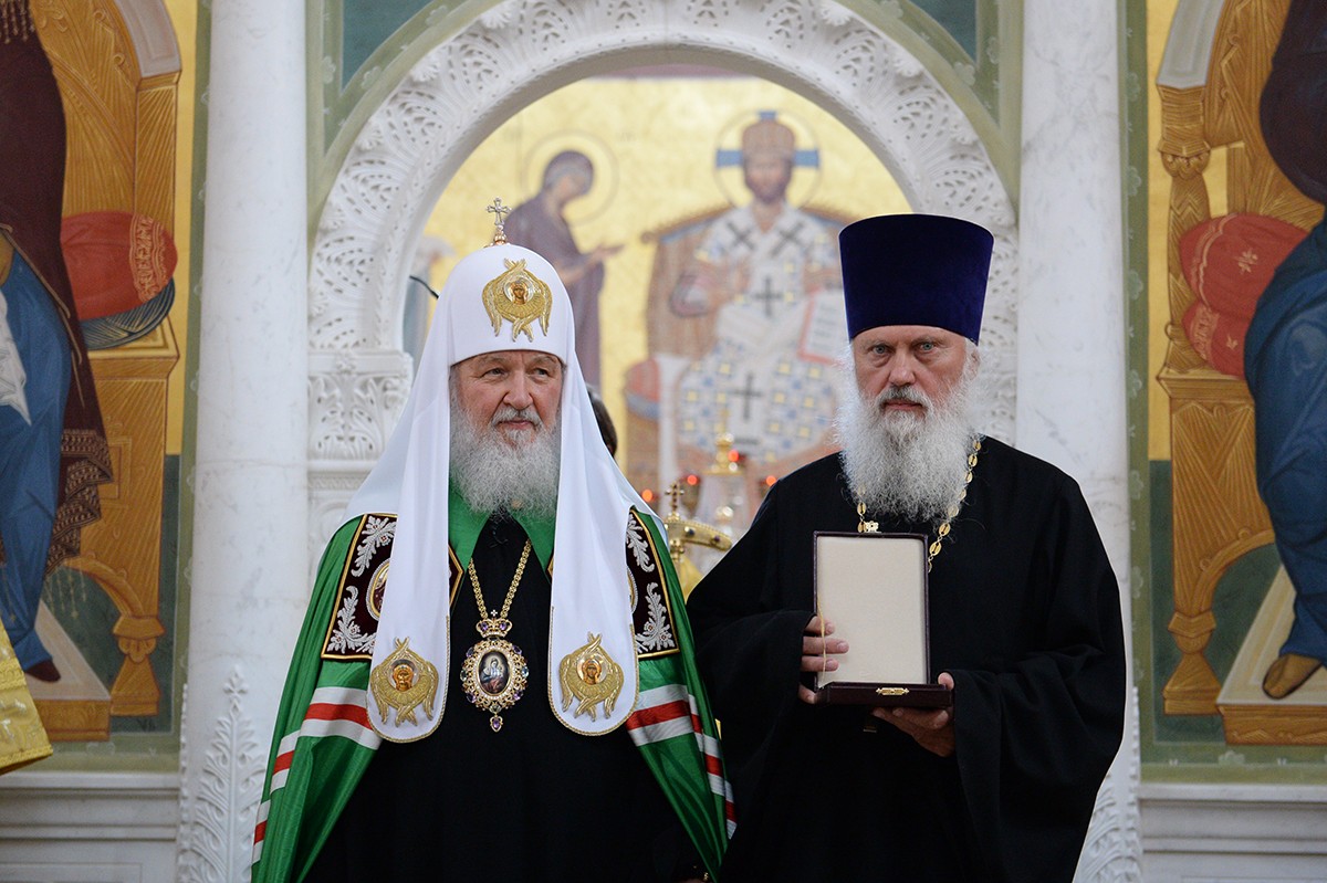 Его Святейшеству сослужили: пребывающий на покое архиерей Грузинской Православной Церкви митрополит Серафим (Джоджуа); архиепископ Сергиево-Посадский Феогност, председатель Синодального отдела по монастырям и монашеству, наместник Свято-Троицкой Сергиевой лавры; протопресвитер Владимир Диваков, секретарь Патриарха Московского и всея Руси по г. Москве; архимандрит Макарий (Веретенников), заместитель председателя Синодального отдела по монастырям и монашеству архимандрит Стефан (Тараканов) и другие насельники Свято-Троицкой Сергиевой лавры в священном сане; архимандрит Амвросий (Кравчук), клирик Покровского Хотькова ставропигиального женского монастыря; священник Александр Волков, руководитель Пресс-службы Патриарха Московского и всея Руси; протоиерей Андрей Марущак, клирик Храма Христа Спасителя г. Москвы; столичное духовенство.