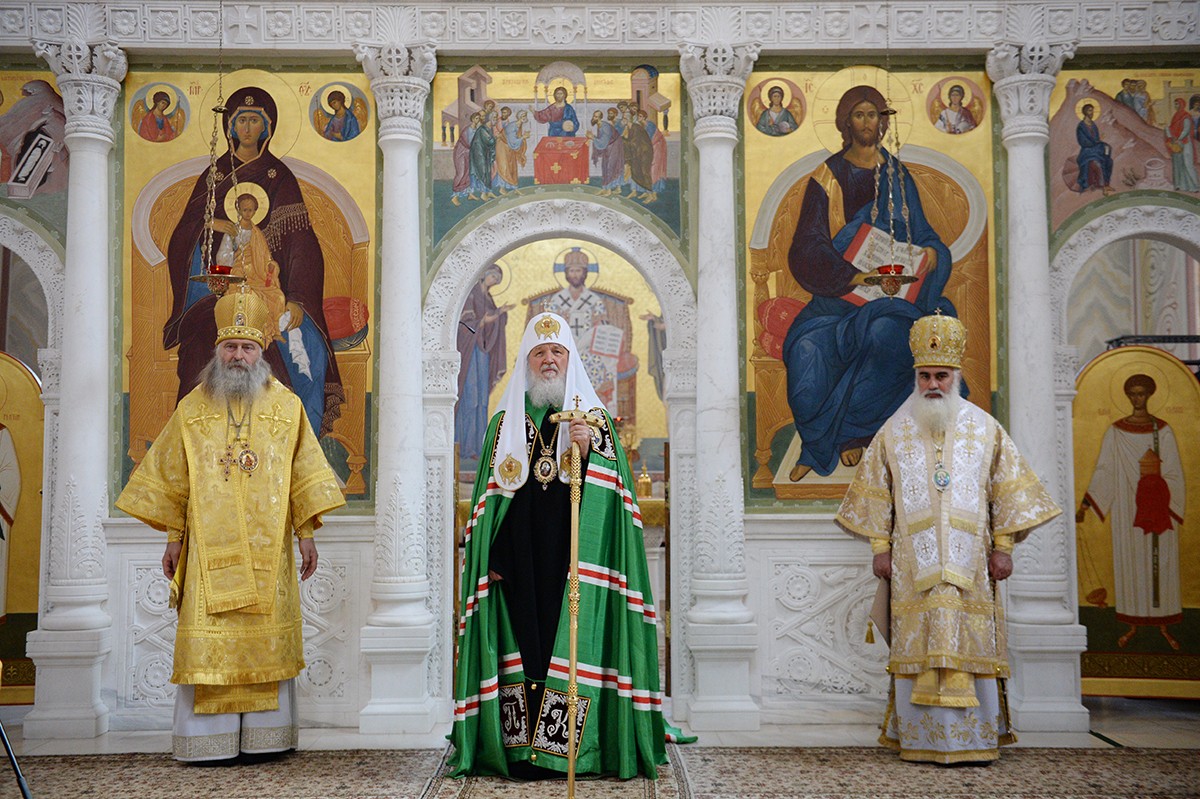 После сугубой ектении Предстоятель Русской Православной Церкви вознес молитву о мире на Украине.