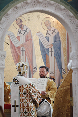 Проповедь перед Причастием произнес клирик Покровского монастыря протоиерей Владимир Верига.