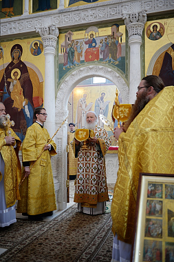В завершение Предстоятель Русской Церкви посетил Покровский храм, где совершил славление и молитву у раки с честными мощами преподобных схимонаха Кирилла и схимонахини Марии, родителей преподобного Сергия Радонежского.