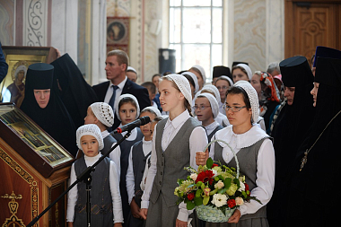 Святейшего Владыку также приветствовали выпускницы и воспитанницы монастырского приюта-пансиона.