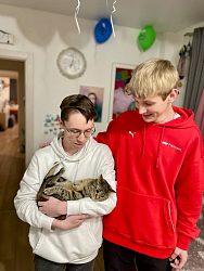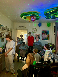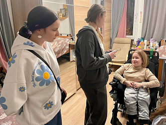 Из 20 воспитанников Софийского дома четверо живут вместе со взрослыми сопровождающими в отдельной квартире рядом с Мещерским парком. Встретились с Катей, Ферузой, Саматом, а также сотрудниками Домика. Леон остался в комнате в силу ограничения здоровья, у него Миодистрофия Дюшенна – редкая генетическая болезнь, при которой постепенно перестают работать мышцы тела.