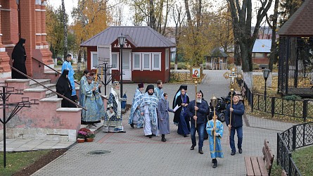 По окончании Литургии был совершен крестный ход в монастырский Иерусалимский храм, где митрополит Феогност отслужил молебен перед чтимой иконой Божией Матери Иерусалимской.