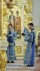 По окончании молебна владыка Феогност поздравил игумению Екатерину с престольным праздником и произнес проповедь.