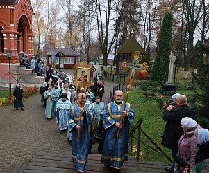 По окончании богослужения богомольцы крестным ходом прошли в Иерусалимский храм, где находится святыня – Иерусалимская икона Божией Матери, перед которой было совершено славление.