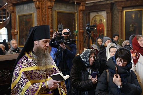 За Литургией молились заместитель председателя СОММ, настоятельница Зачатьевского ставропигиального женского монастыря игумения Иулиания (Каледа), настоятельница Богородице-Рождественского ставропигиального женского монастыря игумения Викторина (Перминова), монашествующие, игумены и игумении монастырей, приехавшие на собрание коллегии СОММ.