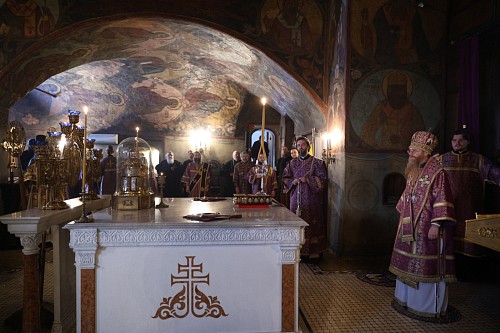 9 апреля 2025 года председатель Синодального отдела по монастырям и монашеству, наместник Донского ставропигиального мужского монастыря митрополит Каширский Феогност совершил Литургию Преждеосвященных Даров в соборе Сретения Владимирской иконы Божией Матери Сретенского ставропигиального мужского монастыря.