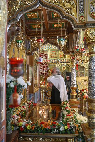 По окончании Литургии был совершен крестный ход и славление святым преподобным Иулиании и Евпраксии Московским перед гробницей на месте захоронения преподобных.