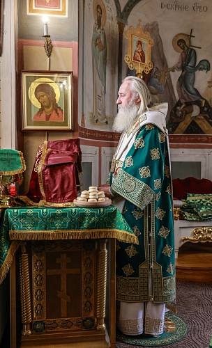 Праздничную Божественную литургию в Троицком соборе возглавил председатель Синодального отдела по монастырям и монашеству, наместник Донского ставропигиального мужского монастыря митрополит Каширский Феогност.