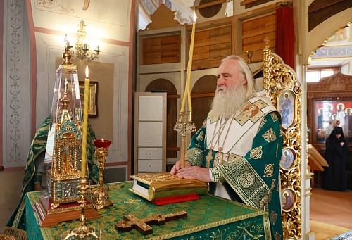 По окончании Божественной литургии была прочитана молитва преподобным Кириллу и Марии и совершено славление перед иконой святых.