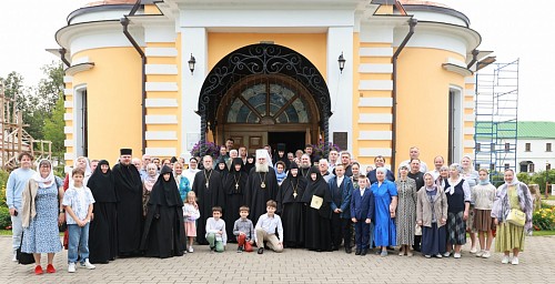 За Литургией молились настоятельница Борисоглебского Аносина монастыря игумения Мария (Солодовникова), настоятельница Акатовского Свято-Троицкого Александро-Невского ставропигиального женского монастыря игумения Антония (Минина), старшая сестра Преображенского скита московского подворья Пюхтицкого Успенского ставропигиального женского монастыря в деревне Юдино Одинцовского района Московской области монахиня Даниила, сестры Успенского скита в Епифани.