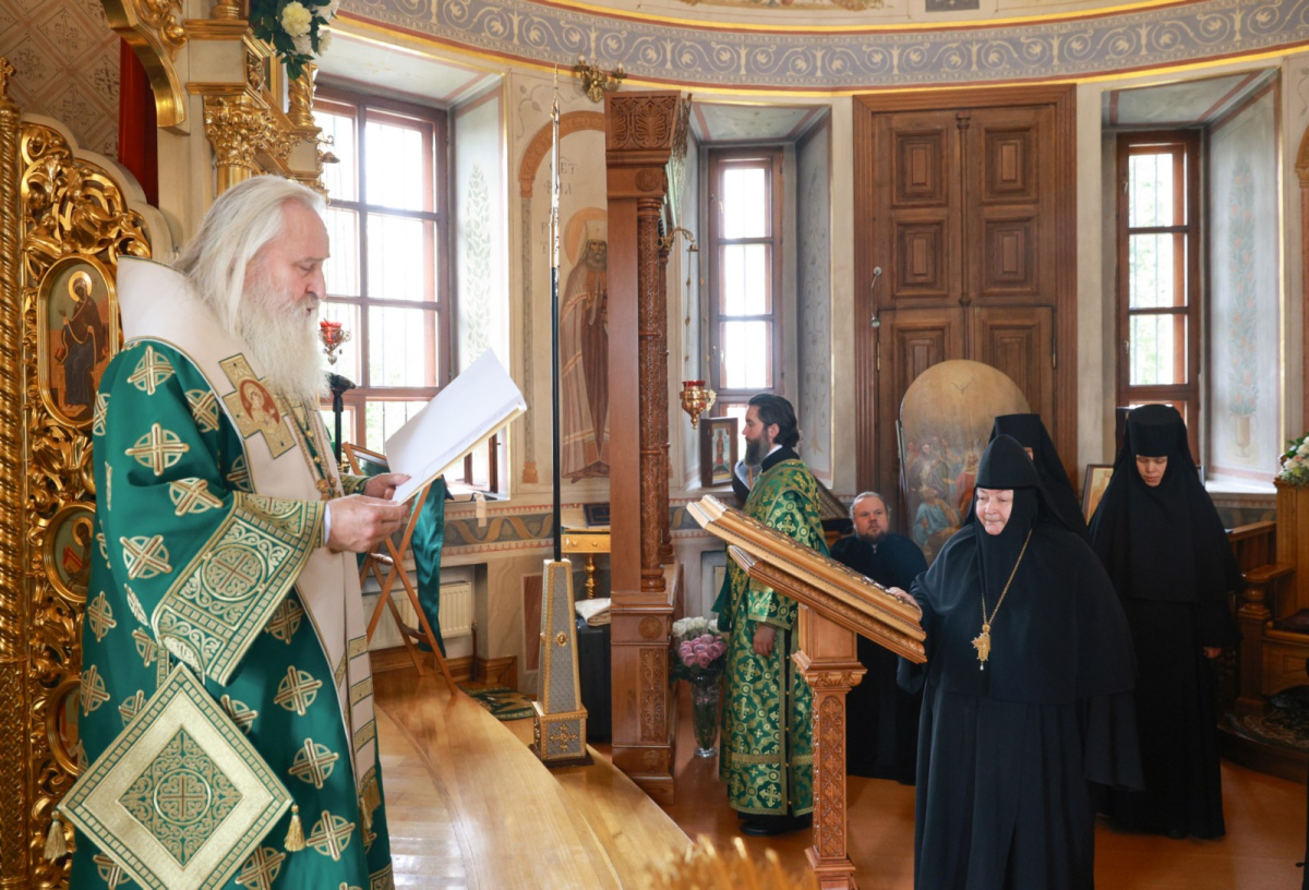 Митрополит Феогност огласил приветственное слово Патриарха Московского и всея Руси Кирилла по случаю тезоименитства настоятельницы Борисоглебского Аносина ставропигиального женского монастыря игумении Марии (Солодовниковой).