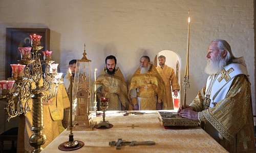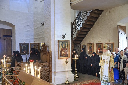 Его Высокопреосвященству сослужило монастырское духовенство.