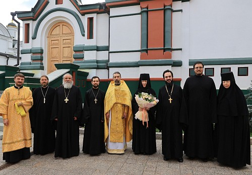 В храме молились настоятельница монастыря игумения Викторина (Перминова); приехавшие поздравить матушку игумению с юбилеем заместитель председателя Синодального отдела по монастырям и монашеству, настоятельница Зачатьевского ставропигиального женского монастыря игумения Иулиания (Каледа); настоятельница ставропигиального монастыря Марфо-Мариинской обители милосердия игумения Елисавета (Позднякова); настоятельница ставропигиального монастыря Казанской Амвросиевской женской пустыни с. Шамордино игумения Сергия (Щербакова); председатель Правления общественного благотворительного фонда имени великой княгини Евдокии Московской, телеведущая Л.С. Акелина; заведующая канцелярией Синодального отдела по монастырям и монашеству Г.В. Филиппова; главный редактор портала «Монастырский вестник» Е.П. Орлова; сестры и прихожане монастыря.