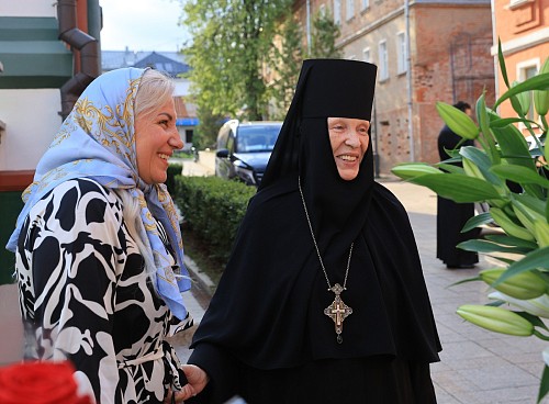 По завершении богослужения Высокопреосвященнейший митрополит Феогност огласил поздравление Святейшего Патриарха Московского и всея Руси Кирилла игумении Викторине с 70-летием и передал матушке Патриаршую грамоту.