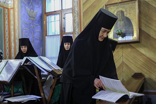 Богослужебные песнопения исполнил сестринский хор монастыря и мужской хор храма Живоначальной Троицы в Останкине г. Москвы.