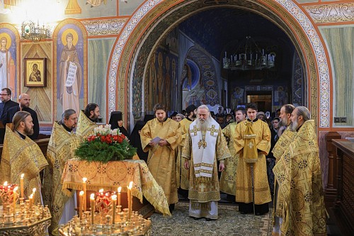 По окончании богослужения митрополит Феогност произнес проповедь о христианском подвиге святителя Афанасия (Сахарова).
