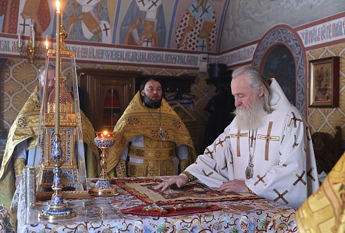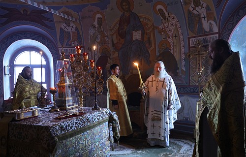 Его Высокопреосвященству сослужили клирики Стефано-Махрищского монастыря.