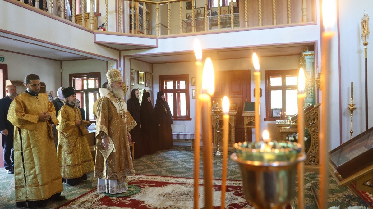 За Литургией Его Высокопреосвященству сослужили клирики монастыря.