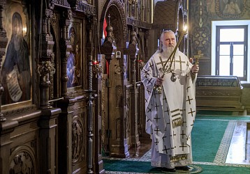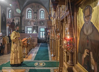 Его Высокопреосвященству сослужили начальник подворья игумен Петр (Романов), братия подворья в священном сане.