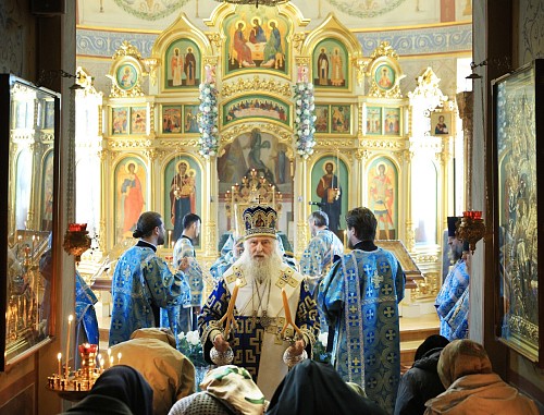 Его Высокопреосвященству сослужило монастырское духовенство.