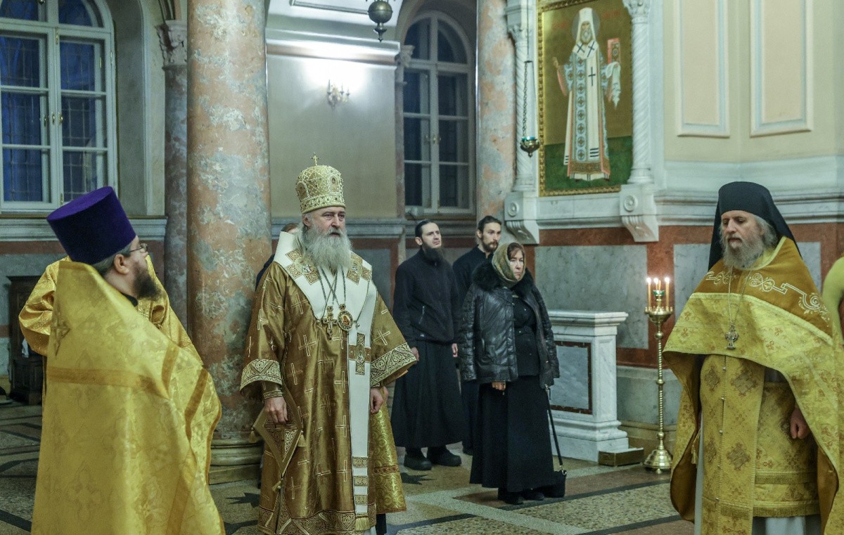 Его Высокопреосвященству сослужили начальник Московского подворья Спасо-Преображенского Валаамского ставропигиального мужского монастыря игумен Петр (Романов), клирики Иоанно-Предтеченского монастыря.