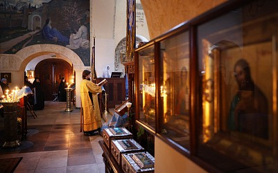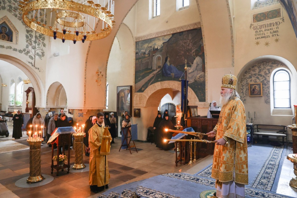 В Покровском соборе обители Его Высокопреосвященству сослужили клирики монастыря.