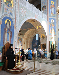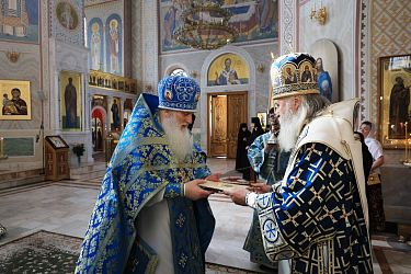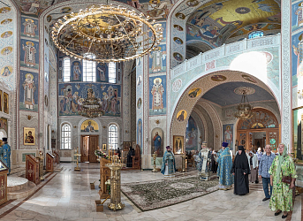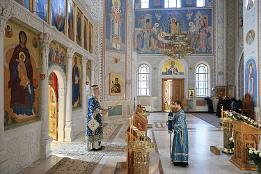 Его Высокопреосвященству сослужило духовенство обители.