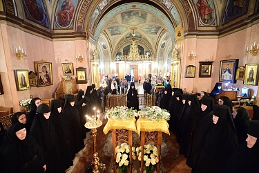 За Литургией молились настоятельница обители игумения Феофания (Мискина) с сестрами, воспитанницы и воспитанники детского приюта при монастыре, прихожане и многолетние благодетели обители.