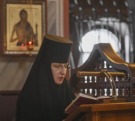 Его Высокопреосвященству сослужили заместитель председателя Синодального отдела по монастырям и монашеству архимандрит Стефан (Тараканов), клирик храма во имя иконы «Всех Скорбящих Радосте» г. Москвы игумен Филарет (Тамбовский), клирики Стефано-Махрищской обители и подворья монастыря.