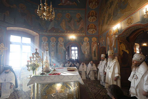 По окончании Литургии, перед отпеванием схиархимандрита Илии (Ноздрина), митрополит Феогност посетил скит монастыря.